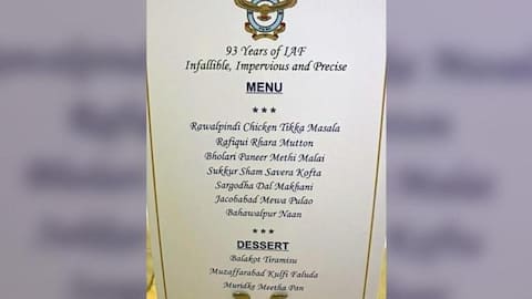 இந்திய விமானப்படை தினத்தன்று பரிமாறப்பட்ட மெனுவில் ராவல்பிண்டி சிக்கன் டிக்கா மசாலா, போலாரி பனீர் மேத்தி மலாய் மற்றும் பாலகோட் டிராமிசு ஆகியவை இடம்பெற்றன. பாகிஸ்தானில் போர்க்களத்தில் இந்தியாவின் அனைத்து சாதனைகளும் நமது விமானப்படை அதிகாரிகளுக்கு ஒரு தட்டில் பரிமாறப்பட்டன. ஆபரேஷன் சிந்தூரின் போது விமானப்படையின் வெற்றிகரமான தாக்குதல்கள் குறித்து வெளிப்படையாக கூறும் வகையில், இஸ்லாமாபாத்தில் ஏற்பட்ட சேதத்தை - போலாரி விமானத் தளத்தைத் தாக்கியது முதல் முரிட்கேயில் உள்ள லஷ்கர் பயங்கரவாத முகாம்களை அழித்தது வரை - மெனுவில் நக்கலாக இடம் பிடித்திருந்தது தற்போது வைரலாகி வருகிறது.
